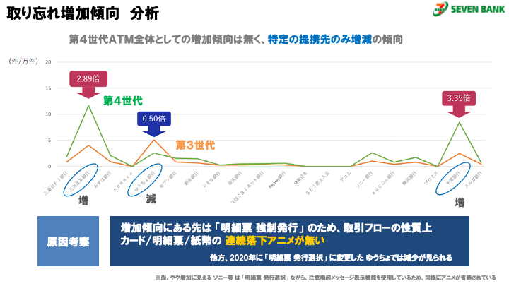 特定取引先に紙幣取り出し忘れが集中する傾向