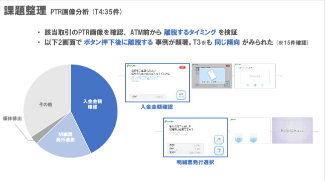入金確認画面,明細票発行画面といったボタン押下後の離脱が顕著